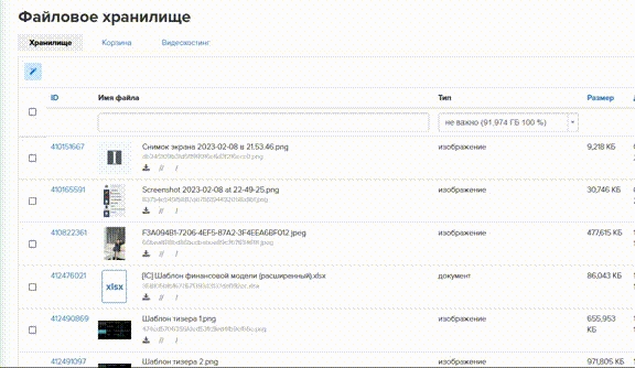 Удобное превью изображений и видео, не ломающее верстку таблицы. Возможность скопировать ссылку на файлы, не открывая карточку файла. Возможность скопировать ссылку на файл сразу после загрузки, не открывая карточку файла.
