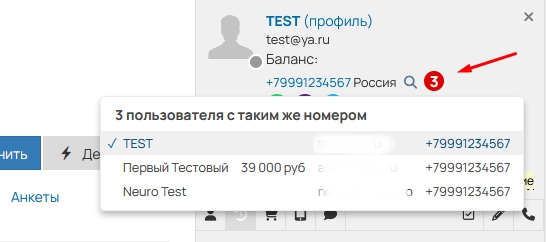 Индикатор дублей в карточке пользователя