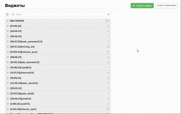 Папки в списке виджетов