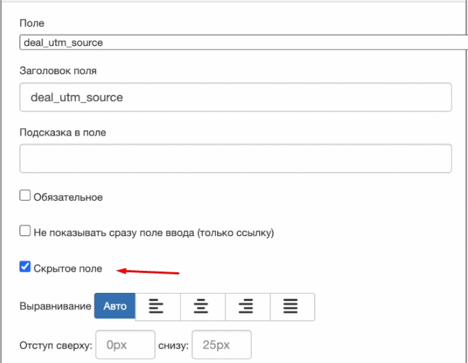 Если вы просматриваете страницу как администратор, то у вас есть возможность вывести скрытые поля. Например, для того, чтобы проверить корректно ли записались UTM-метки в такие поля.