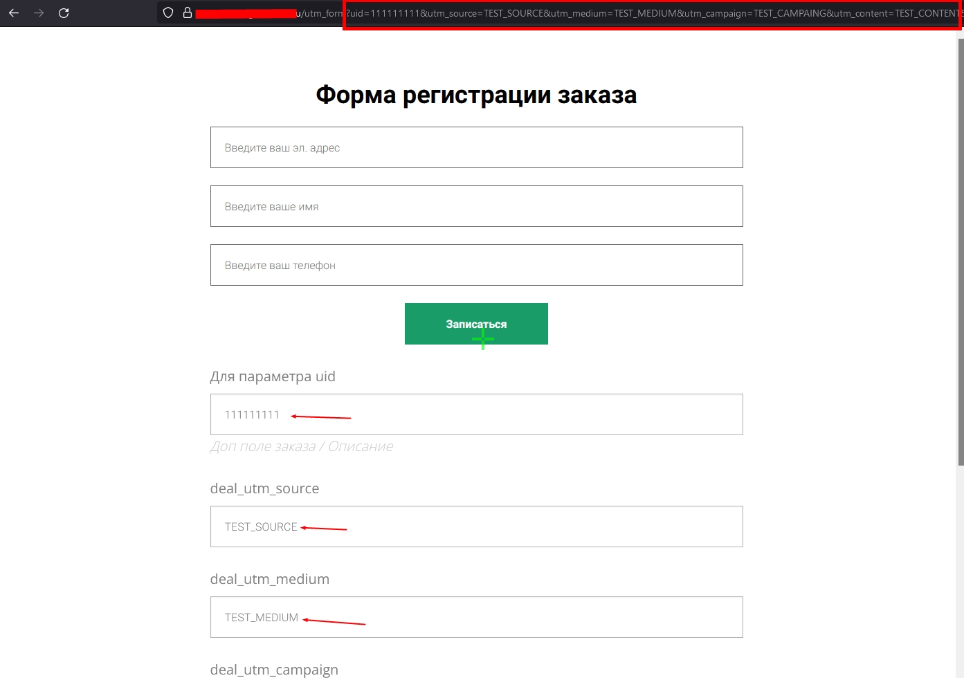 Запись UTM-меток в доп поля заказа, созданном через форму