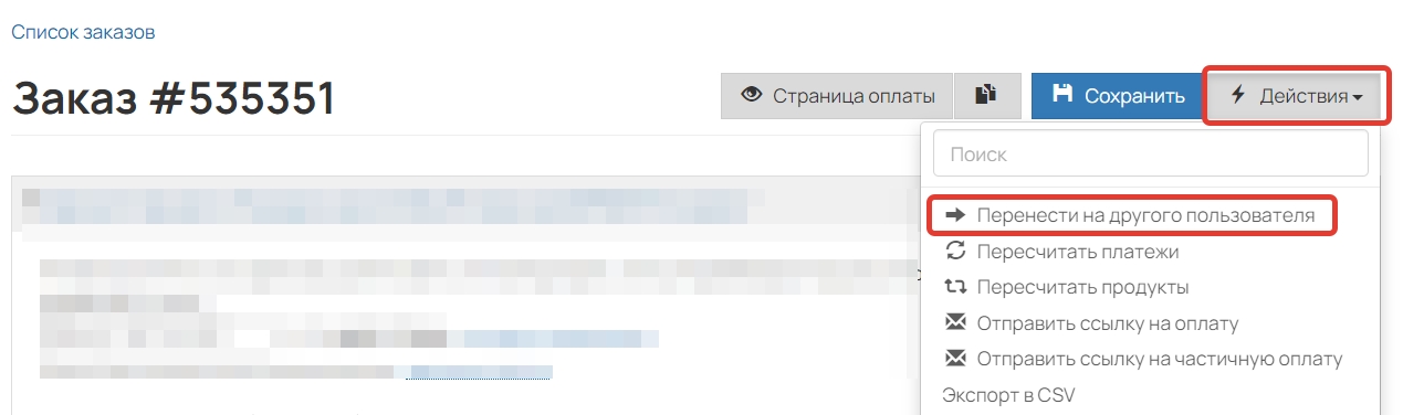 Если у пользователя несколько почт и он постоянно путается в аккаунтах или купил курс в подарок, благодаря плагину очень удобно перенести заказ. При чем перенести с полным объемом информации - менеджер, теги, партнеры, примененный промокод - вся информация переносится в новый заказ.
